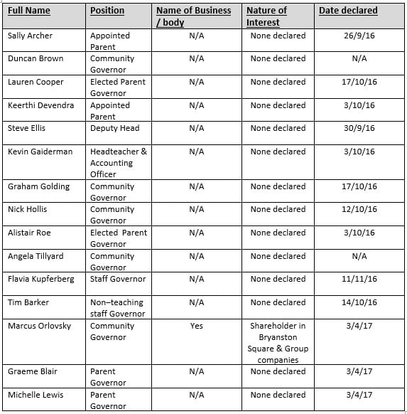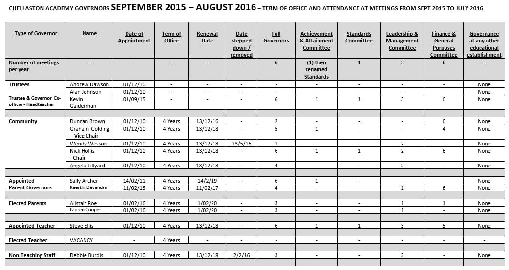 This page details archived data regarding Governors’ attendance and registered business interests.
